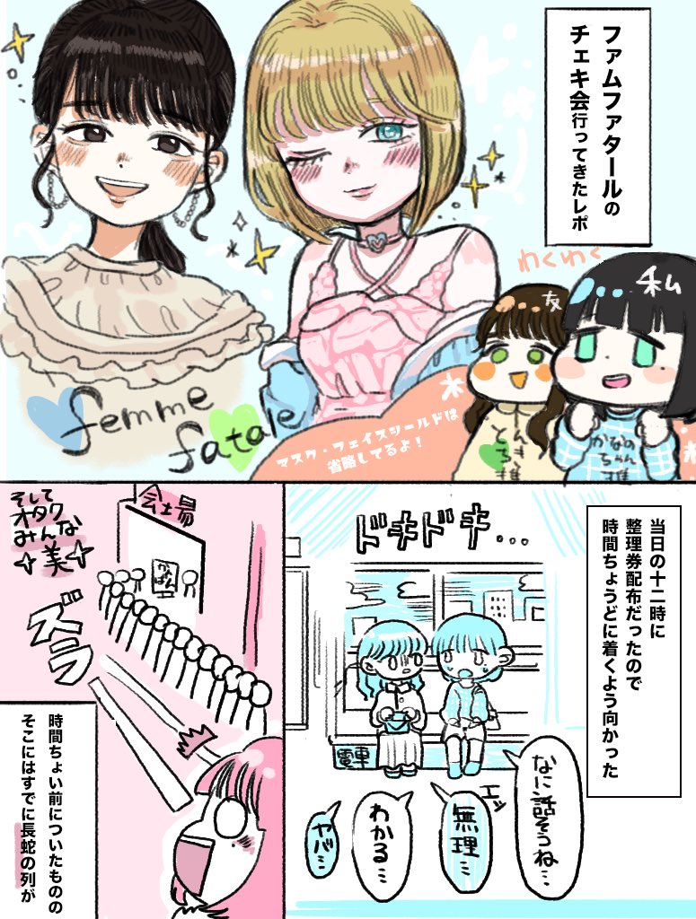 famfataleのチェキ会行ってきたレポ漫画です✌️ ほんとに2人とも顔面お強かったしファンサがえぐくてみんなメロメロだった! 迷ってる人は行った方がいい😭🦋 #famfatale #戦慄かなの #頓知気さきな #コミックエッセイ #漫画が読めるハッシュタグ #ファムファタール #イラスト