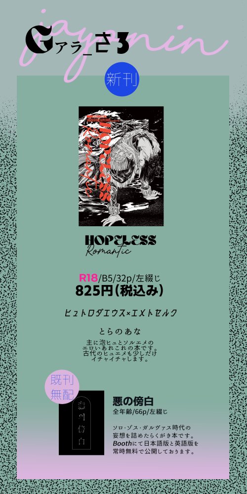 【注:黒魔道士ジョブクエバレ有】ザイ・ア・ネルハー×ラライweb再録本です!(web未掲載ものもありますが、いずれweb掲載します)A5/50P/表紙スミ とらのあなさん通販→ec.toranoana.jp/joshi_r/ec/ite… ※0時から通販開始です。納品は7月上旬になります。 #頭割り5作品URL