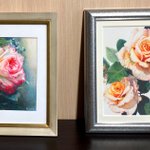 明日からの色鉛筆アートマーケットに出品する作品です (左の絵は、まだ自分で切った簡易マットの状態です) 額は額のまつえださんに注文しました 早くてびっくりでした✨ #色鉛筆画 #色鉛筆アートマーケット #額のまつえだ