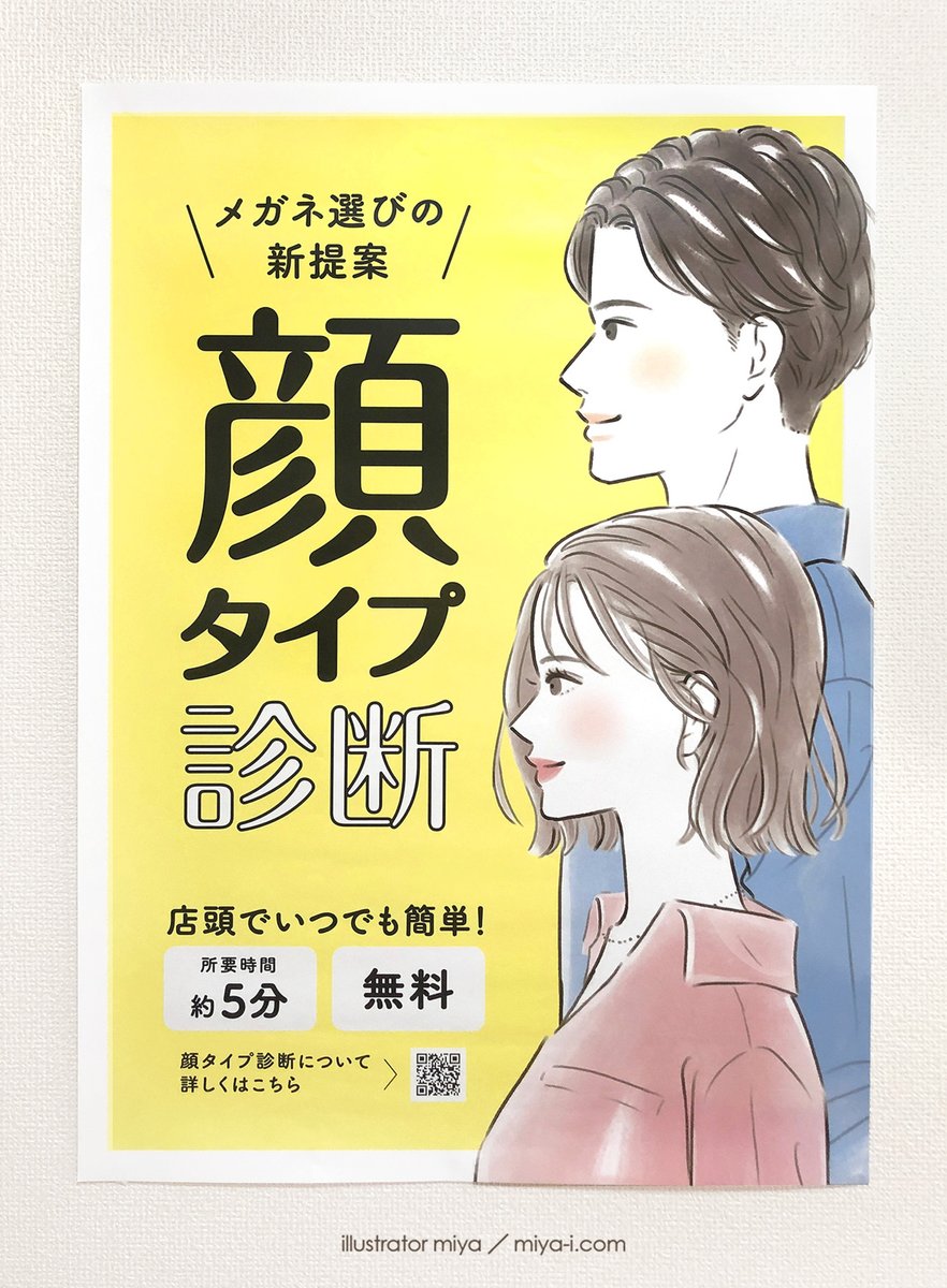 眼鏡市場様「顔タイプ診断」にて、 キービジュアルと顔タイプ別イラストを担当いたしました。 店頭ポスター・店頭ツール・webにて展開いただいています🌟 ブログ ameblo.jp/miya-iw/ #イラ通 illustrators.jp/profile.php?id…… #イラスト #イラストレーター #illustraion #顔タイプ診断