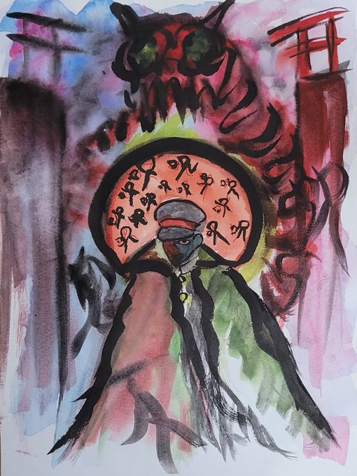 『呪術』 呪術廻戦初めて見た👀!! めちゃくちゃ面白い。 昔から呪いの文化ってありますよね! あ、帝都大戦ちゃうよw #絵描きさんと繋がりたい #絵描きさんフォロバ100 #みんなで楽しむTwitter展覧会 #芸術同盟 #顔彩 #呪術廻戦