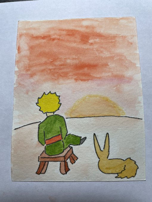 #イラスト #イラスト好きな人と繋がりたい #星の王子さま #lepetitprince #顔彩画 #水彩画 なんか久しぶりに王子さま描いた? カフェら展のお礼のクリスマスカードでもって考えてたのに…何故かこんな風に(¬_¬)