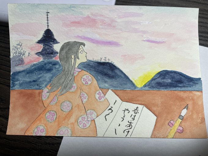 #イラスト #イラスト好きな人と繋がりたい #顔彩画 #春のミニミニ原画展 鎌倉MONAさんに出展する作品です。 1つ目はイースターを題材に。 自分的にもかなり気に入ってます❣️ 2つ目はいつもと違うのに挑戦しようと😁 春と言えば…春はあけぼのかなって(笑) 一生懸命描いたけど…難しかった(¬_¬)