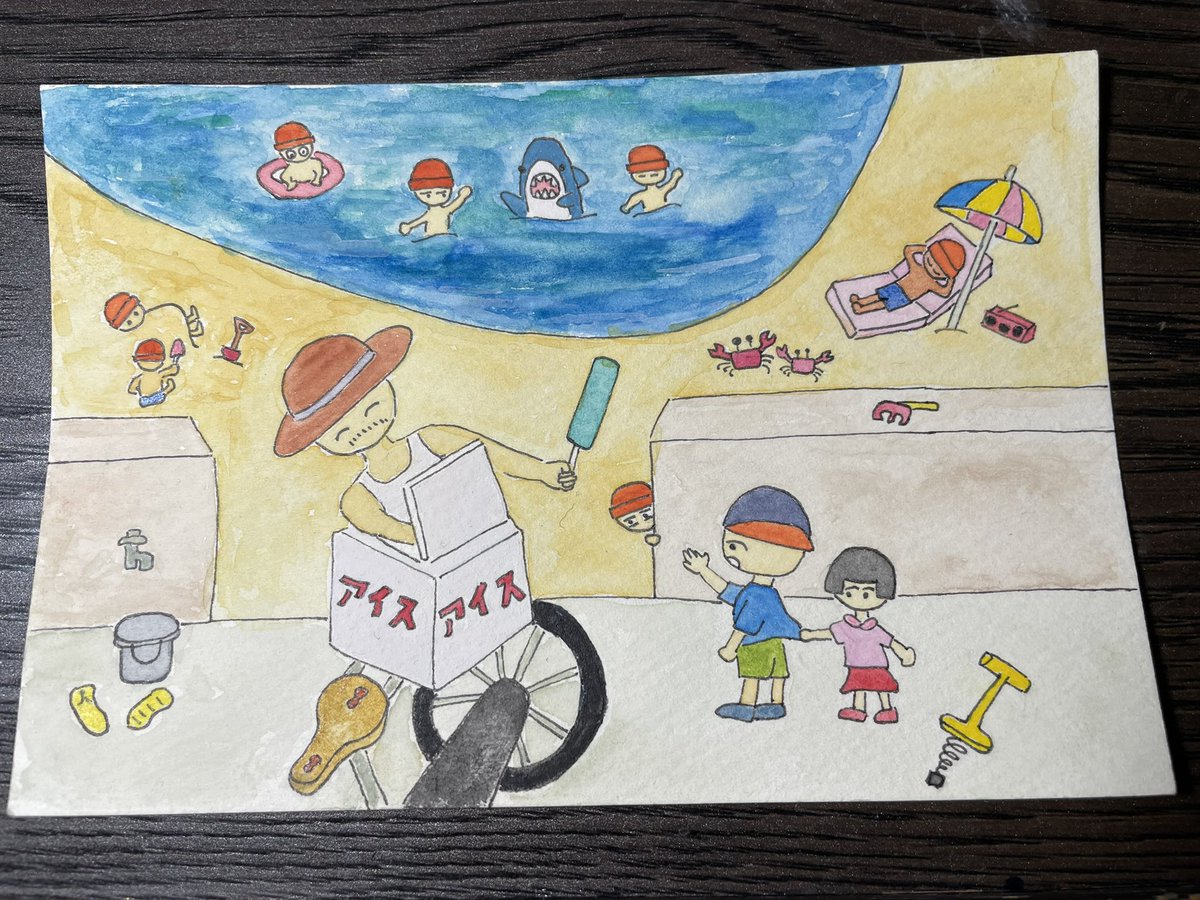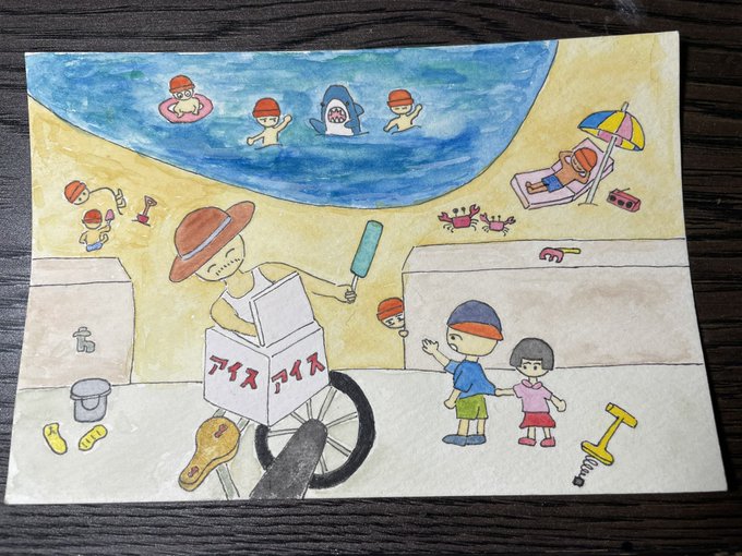 #イラスト #イラスト好き #イラスト好きと繋がりたい #水彩画 #顔彩 #顔彩画 #真夏の夜の夢 #真夏の夜の夢展2022 「お花めっけ❕」 インスタにアップしてからパックの顔と腕の色味が違い過ぎたので重ね塗り… 濃すぎたかも ヒーハー(by小杉)