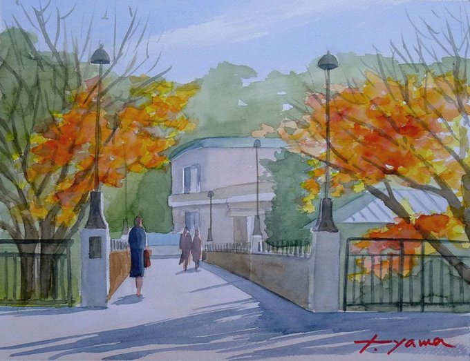 #水彩画 #透明水彩 #風景スケッチ #Watercolor #Landscape #sketch ようやくスケッチに適した季節になりました。グループで #象の鼻パーク に出かけ、海側から #日本大通り をスケッチしました。