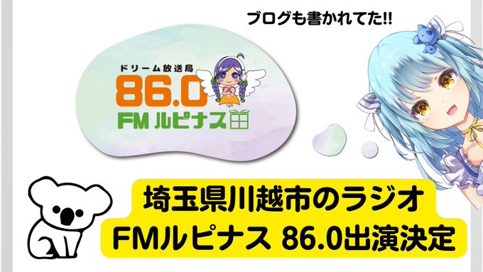【重大告知?!】 北海道のラジオに続いて今度は 埼玉県のラジオに出演します!!!💛 9/30 18:00~ 10/1 16:00の間の20分…! タイムテーブル出来次第お知らせ! YouTubeチャンネルはこちら↓ youtube.com/c/fmlupinus860 #風渚こあ #FMルピナス ※画像お借りしました_(._.)_ 記事にしてもらった↓ twitter.com/sleepingsub/st…