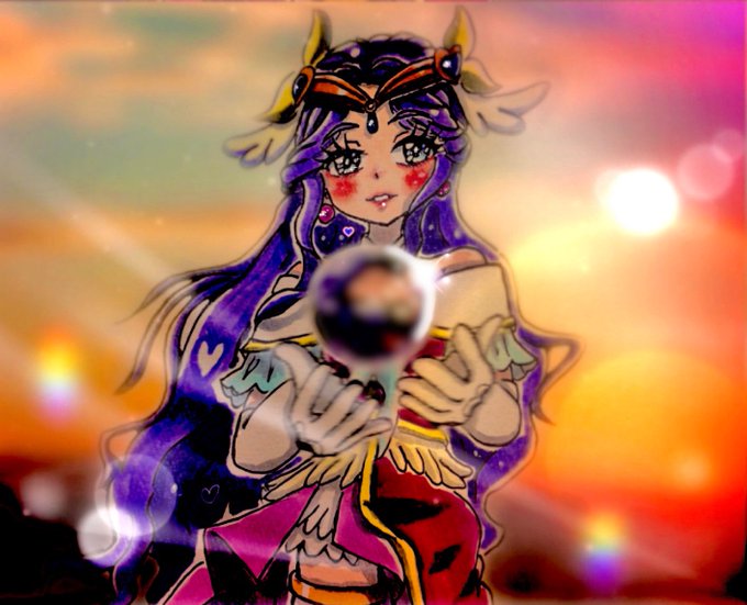 『朝陽が水平線から 光の矢を放ち 二人を包んでゆくの 瑠璃色の地球』 music.apple.com/jp/album/%E7%9… 名曲、瑠璃色の地球に乗せて。 お誕生日おめでとうございます🎉🎉 #プリキュア #precure #キュアアース生誕祭2022 #キュアアース #風鈴アスミ生誕祭2022 #風鈴アスミ #イラスト