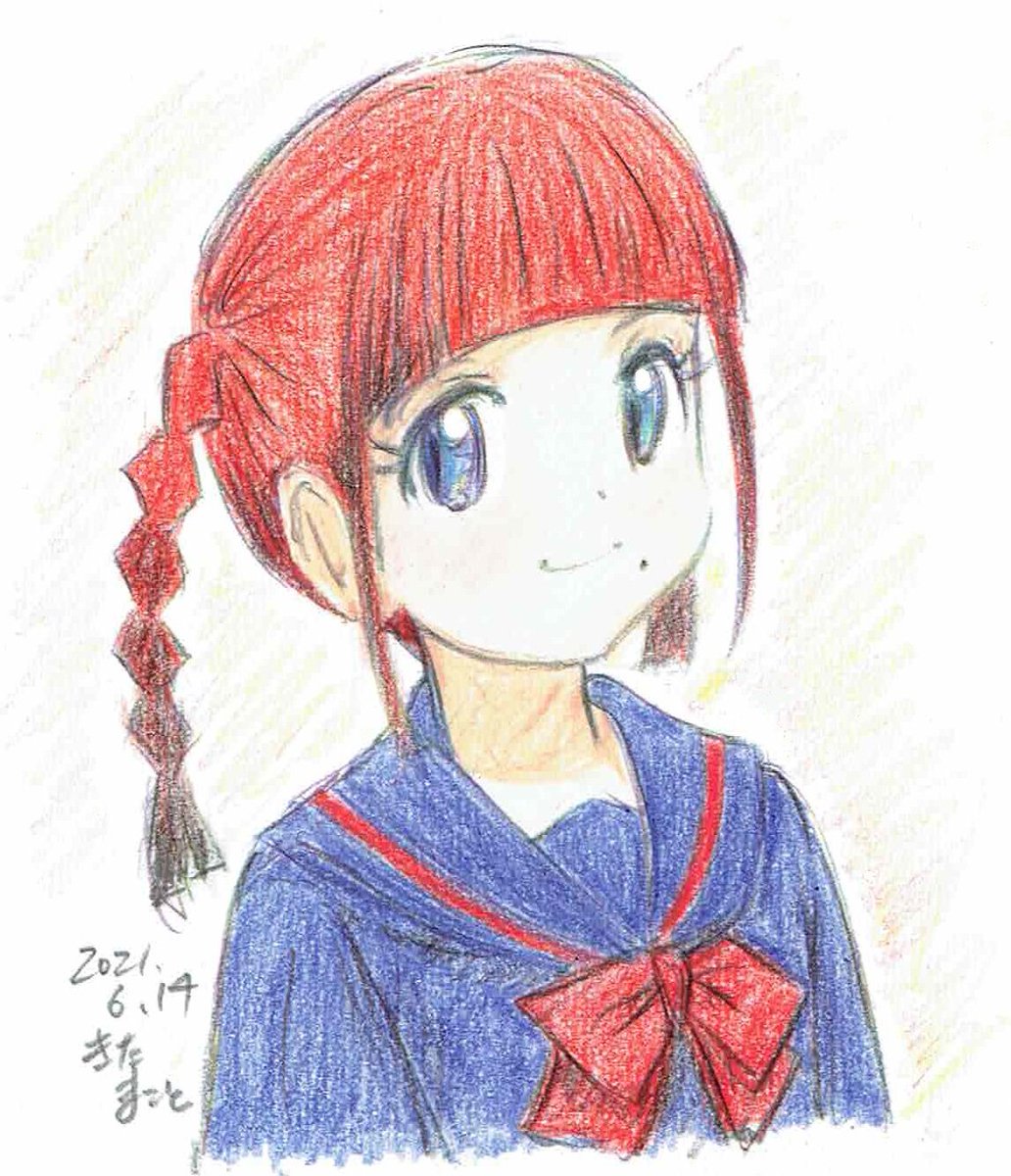 #みなさん去年の今頃はどんな絵描いてましたか 去年の今日は #SSSS_DYNAZENON の #飛鳥川ちせ ちゃんのセーラー服姿を描きました。ちせちゃんはいつも金太郎の前掛けのような「露出の多い高い服装」だったので、11話の制服姿の方がドキドキしたというw あれからもう1年、早いものです。