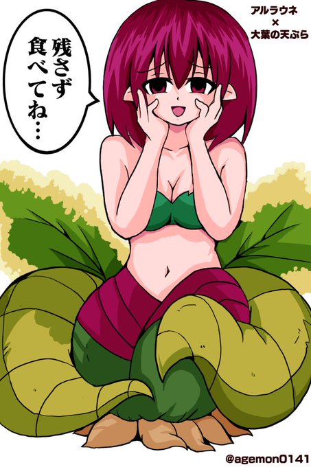 出来ました。お尻に生えている葉っぱが大葉の天ぷらにされてしまったアルラウネです。久々に描いたので苦戦しました。 #オリジナル #アルラウネ #天ぷら #イラスト #絵描きさんと繋がりたい #イラスト好きな人と繋がりたい #食育の日