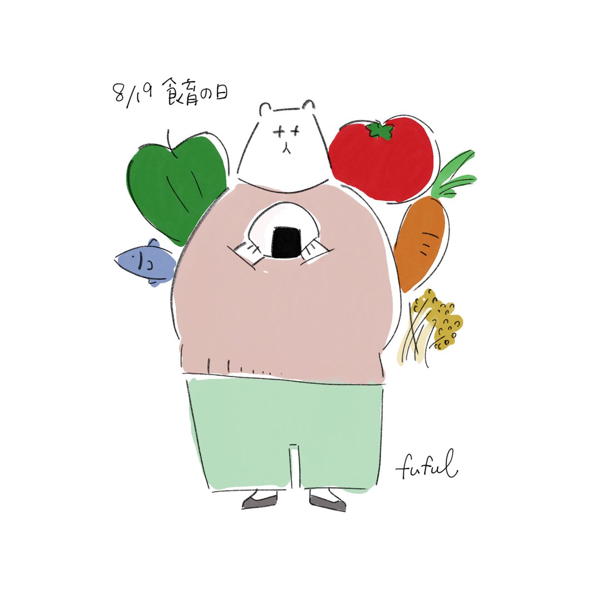 8/19は食育の日。 食べることは体の要。 自分も次の世代にも食の大切さを伝えることは大事ですね。 #イラスト好きな人と繋がりたい #イラストレーターさんと繋がりたい #イラスト #ファッション #挿絵 #挿絵イラスト #イラストレーター #ファッションイラスト #線画イラスト #線画 #食育の日 #食育