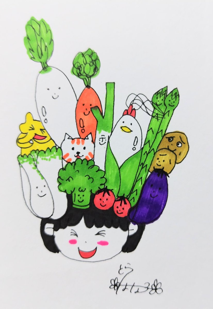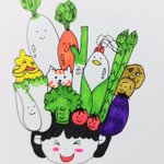 おはようございます!! #食育の日 好きな野菜に、かくれんぼ!! 今日も素敵な水曜日を〜🤗 #絵描きさんと繋がりたい #みんなで楽しむTwitter展覧会 #イラスト #油性ペン #マッキー画