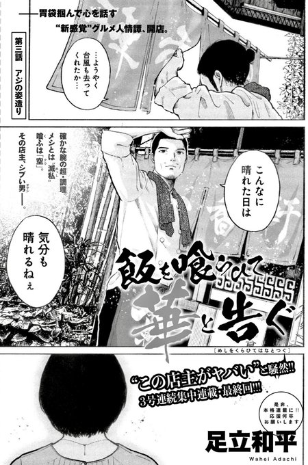 本日発売のヤングアニマル19号に #飯を喰らひて華と告ぐ の最新話が掲載されています! 今回の料理はみんな大好き冷やし中華! そしてこの人は…。 久しぶりのオヤジの過去回です! 是非読んでいただけたら嬉しいです! #飯華