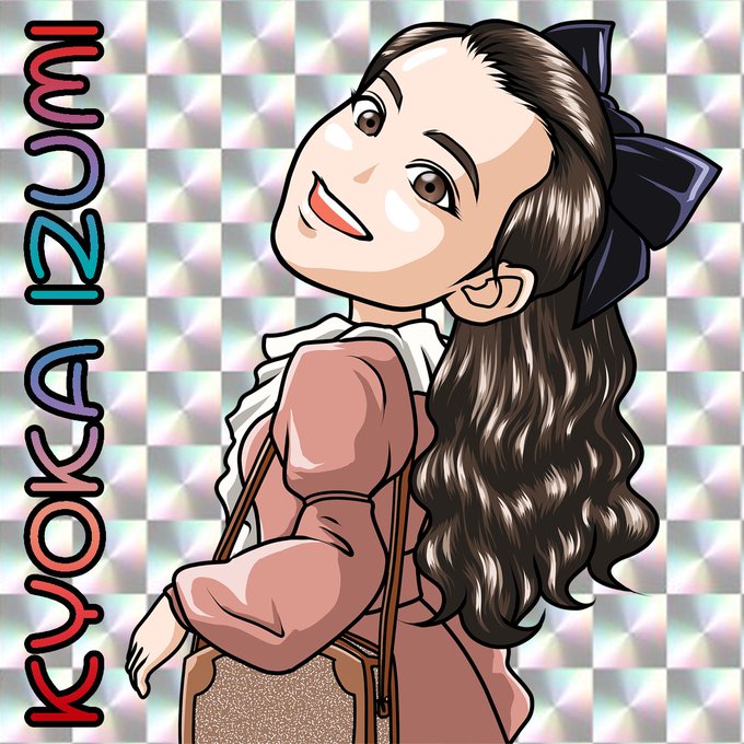 先日上げた「岸辺露伴は動かない」泉京香さんのイラストでホログラム背景にしてみました。Photoshopでホログラム柄作るのって意外と簡単なんだと知ったです。 #岸辺露伴は動かない #泉京香 #飯豊まりえ #漫画が読めるハッシュタグ