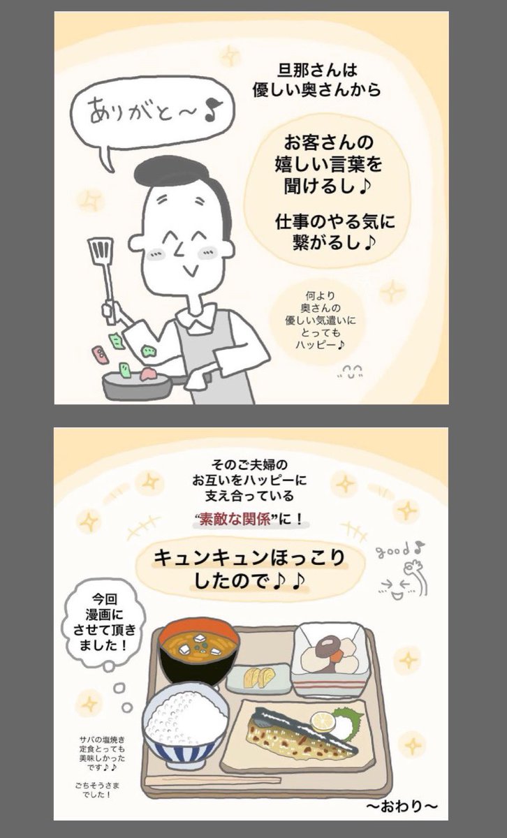 うどん工房かたつむり🐌 4コマ漫画 「粋な計らい」 またリゾートコーデが良く似合ってて😆かっこいい #うどん工房かたつむり #盛岡グルメ #盛岡ランチ #うどん好きと繋がりたい #漫画が読めるハッシュタグ #4コマ漫画 #日常漫画 #エッセイ漫画 #飲食店 #粋 #粋な計らい #アロハ #リゾートコーデ