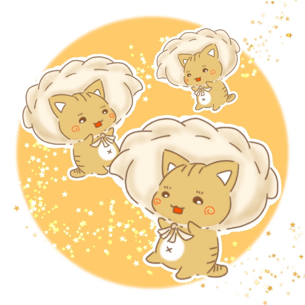 お夕飯時にやってきました🥟✨ 餃子にゃんこさん達です😁 #イラスト #餃子 #猫イラスト #オリジナルキャラクター #猫好き #ねこ #ゆるキャラ #ゴールデンウィークSNS展覧会2022