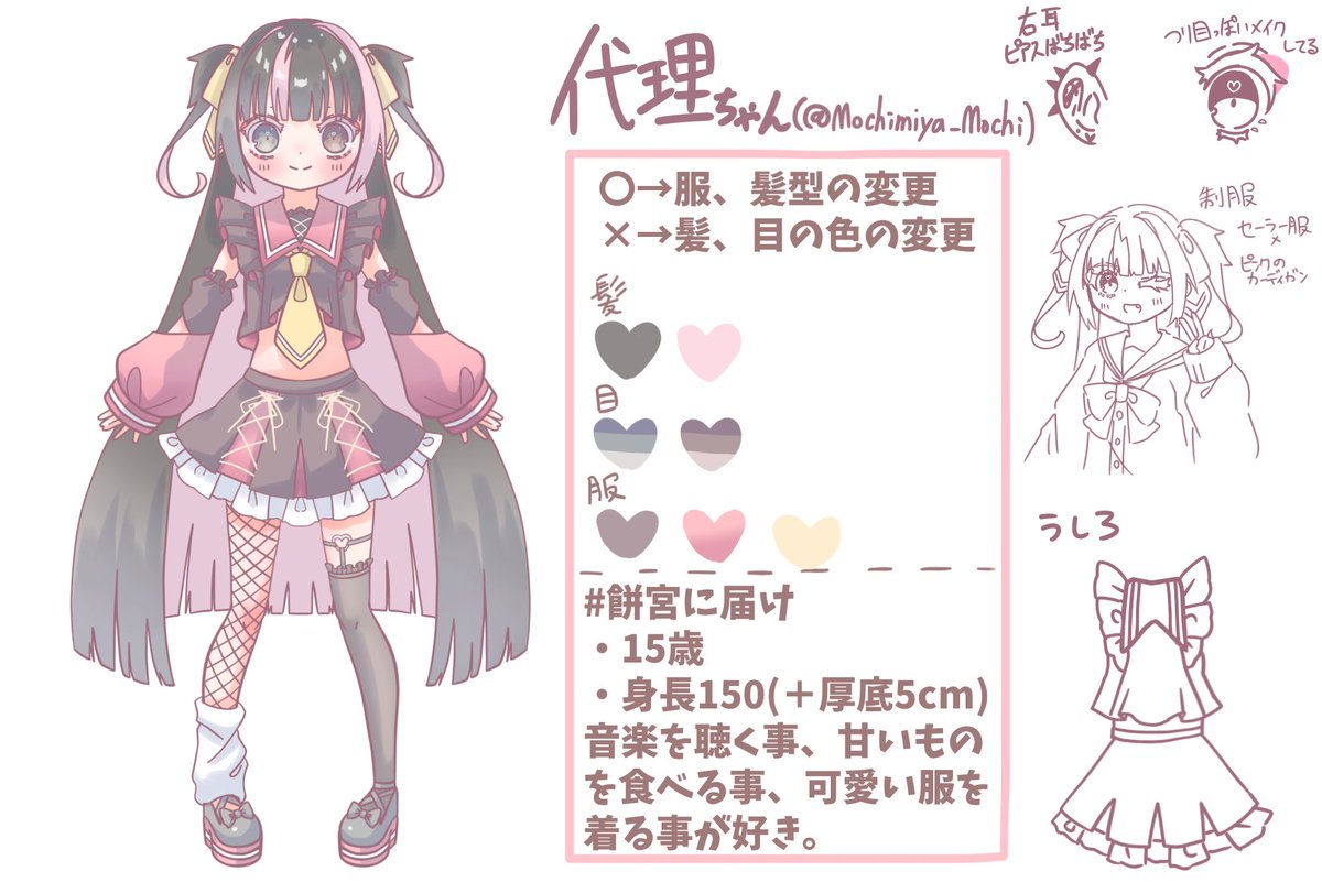 代理ちゃん資料作った!! 色めちゃくちゃ変えたけど!! もし描いてくれる人がいたら #餅宮に届け を付けて投稿してくれたら見に行ってぐへぐへします! #イラスト #中学生絵描きさんと繋がりたい #中学生絵描きさんと繋がりたい #イラスト好きな人と繋がりたい #中学生でこれは上手いと思ったらRT