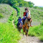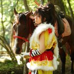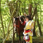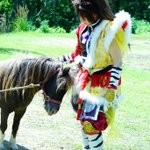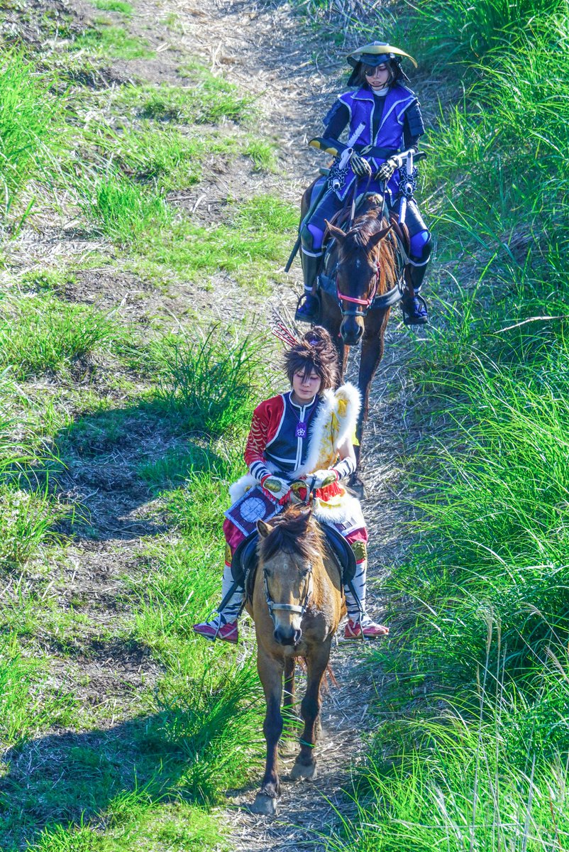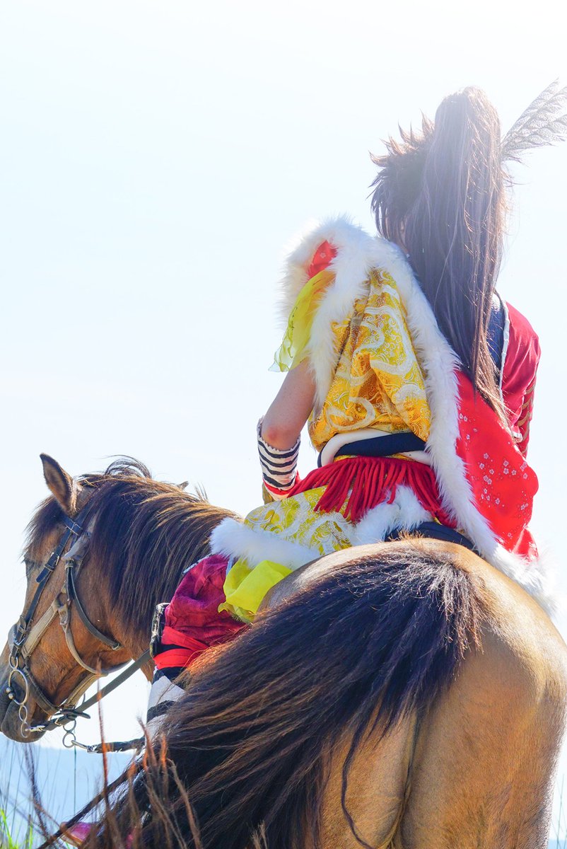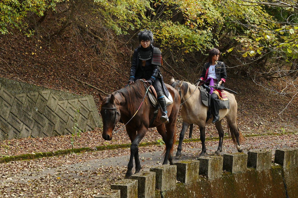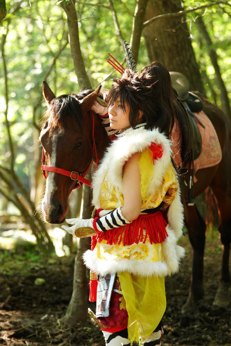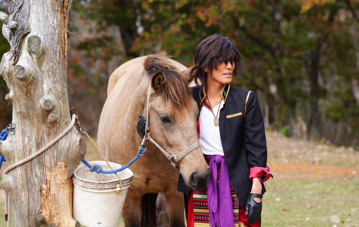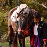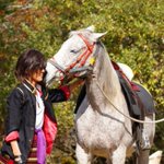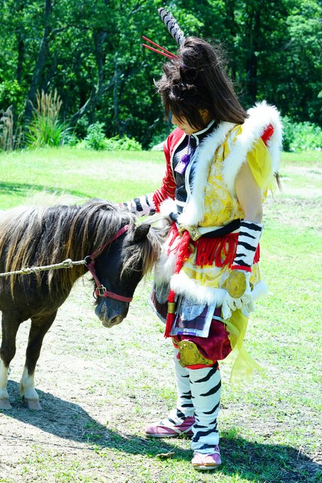 cosplay/刀剣/オフショ #レイヤーさんはコスプレの時のオフショットを晒して下さい お馬さん可愛くて、楽しくてただのワタシwww photographer @sakkun67 🐎ジュピター君 #大阪深山スタジオ #馬の山コス