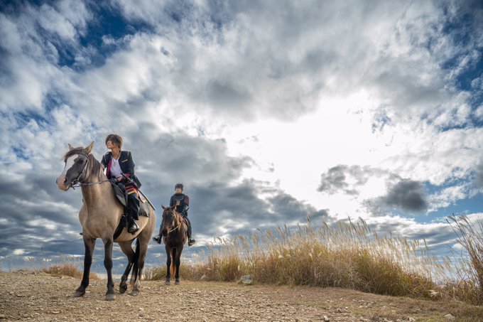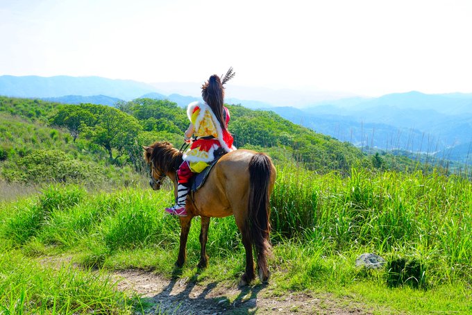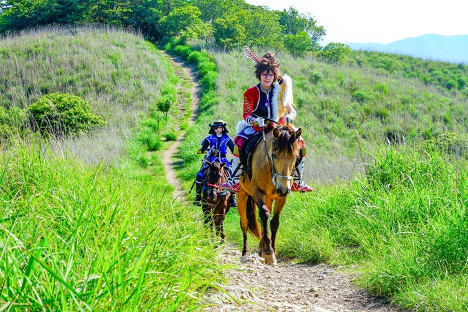 cosplay/刀剣/再掲 #あなたに撮ってもらったこの写真が好きです @Kaonasi_Photo この雄大な景色、それを十二分に生かしてくださって、迫力ある構図めっちゃ好きです💕 同田貫 @EnmsYSTeSzOTHbQ 大倶利伽羅 Ren #大阪深山スタジオ #馬の山コス