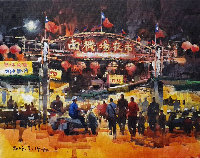 【板橋湳雅夜市】 (Banqiao Nanya Night Market) #Watercolor #MISSION水顏 #馬可威水彩筆 #遵爵水彩紙 #27cm39cm #Nevergiveup #StayHungry #StayFoolish