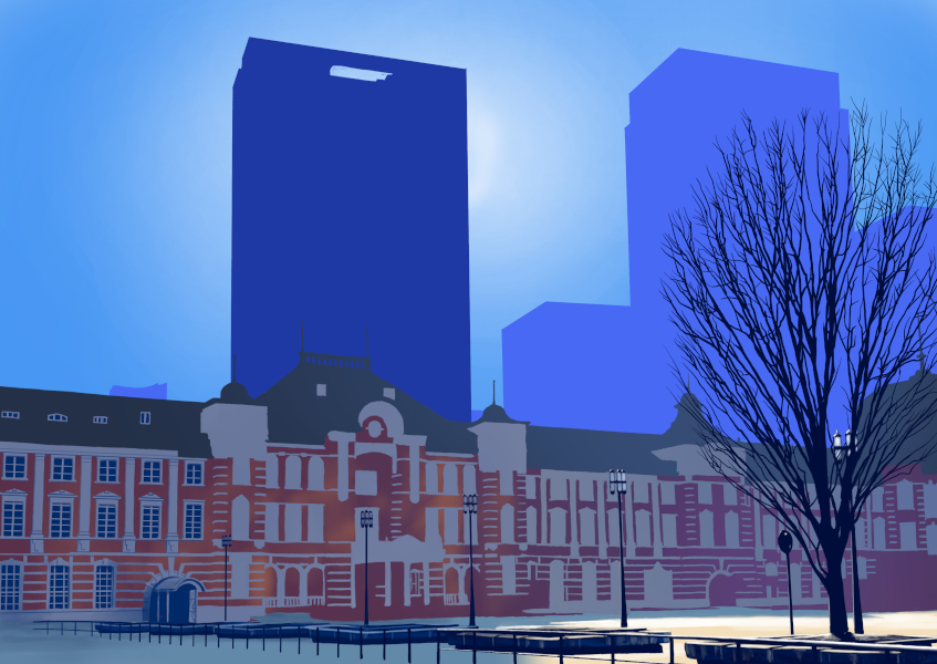 ブルートレインと駅 / Blue Train and Station #mtfuji #popart #landscapepainting #nostalgic #bluetrain #artistontwitter #下吉田駅 #駅 #富士山 #富士 #ブルートレイン #空想画 #みんなで楽しむTwitter展覧会 #芸術の輪 #アートの好きな人と繋がりたい #現実と空想のコラボレーション