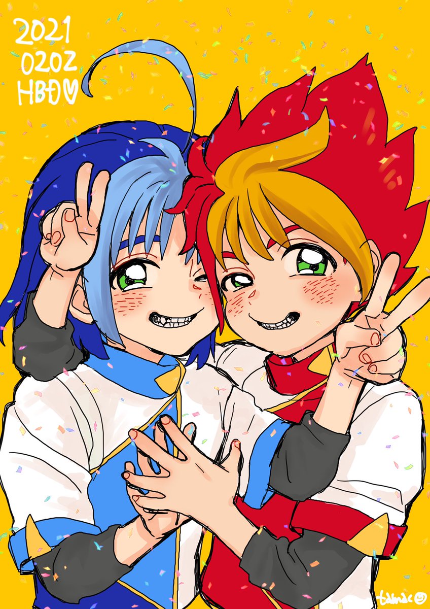 #アースグランナー の ふたごの主人公のお誕生日なので ファンアートを描きました✎ 動物がすきな やさしい子たち🦅🦁 ずっとだいすきなアニメです 仲間たちもみんなすてきだし ロボがかっこいい…! 大阪では土曜に再放送やってます (もしくはアマプラで…!) #駆動ツインズ誕生祭2022