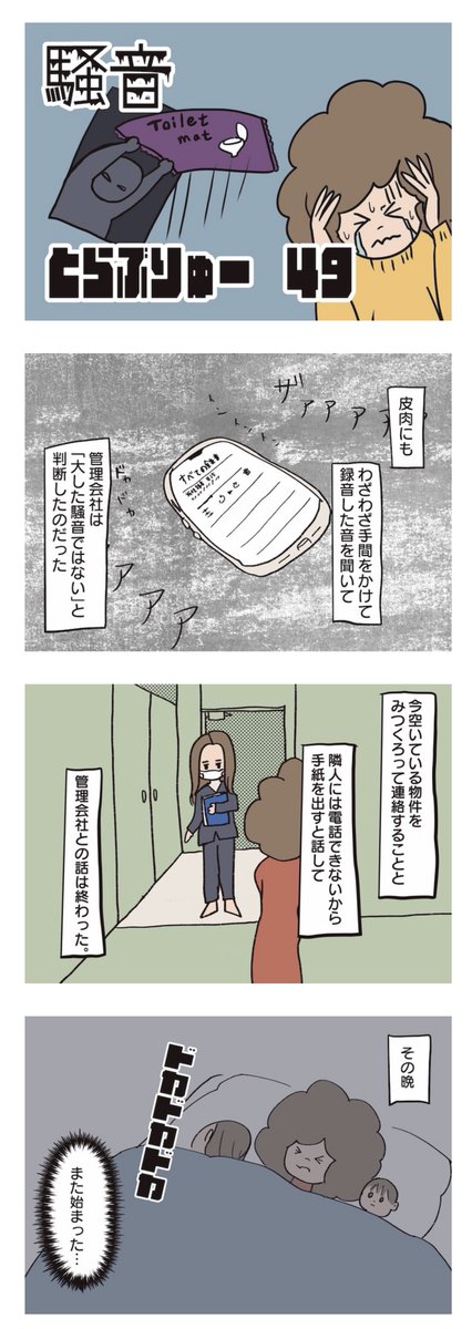 騒音とらぶりゅー50話。 #コミックエッセイ #漫画が読めるハッシュタグ #マンガが読めるハッシュタグ #騒音トラブル #騒音 #騒音被害 #実話 #隣人トラブル #変な隣人 ブログで先読みできます! amnmanga.blog.jp/archives/14799…