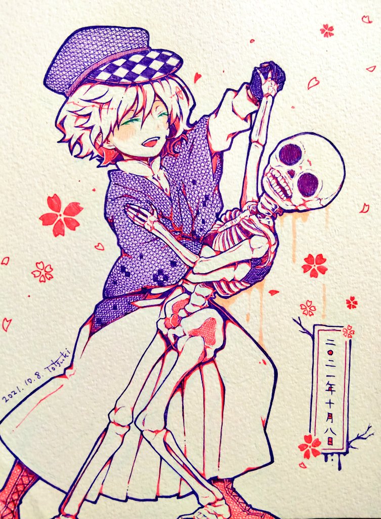 10月5、6、7日分がまだですが、今日の分が先に描けたので…… 「袴を履いた子(男女どちらでも)」というリクエストをいただいたので、去年も描いた書生くんと骨ちゃんを描きました。 #トツキ1日1絵2021 #一日一絵 #骨と関節の日