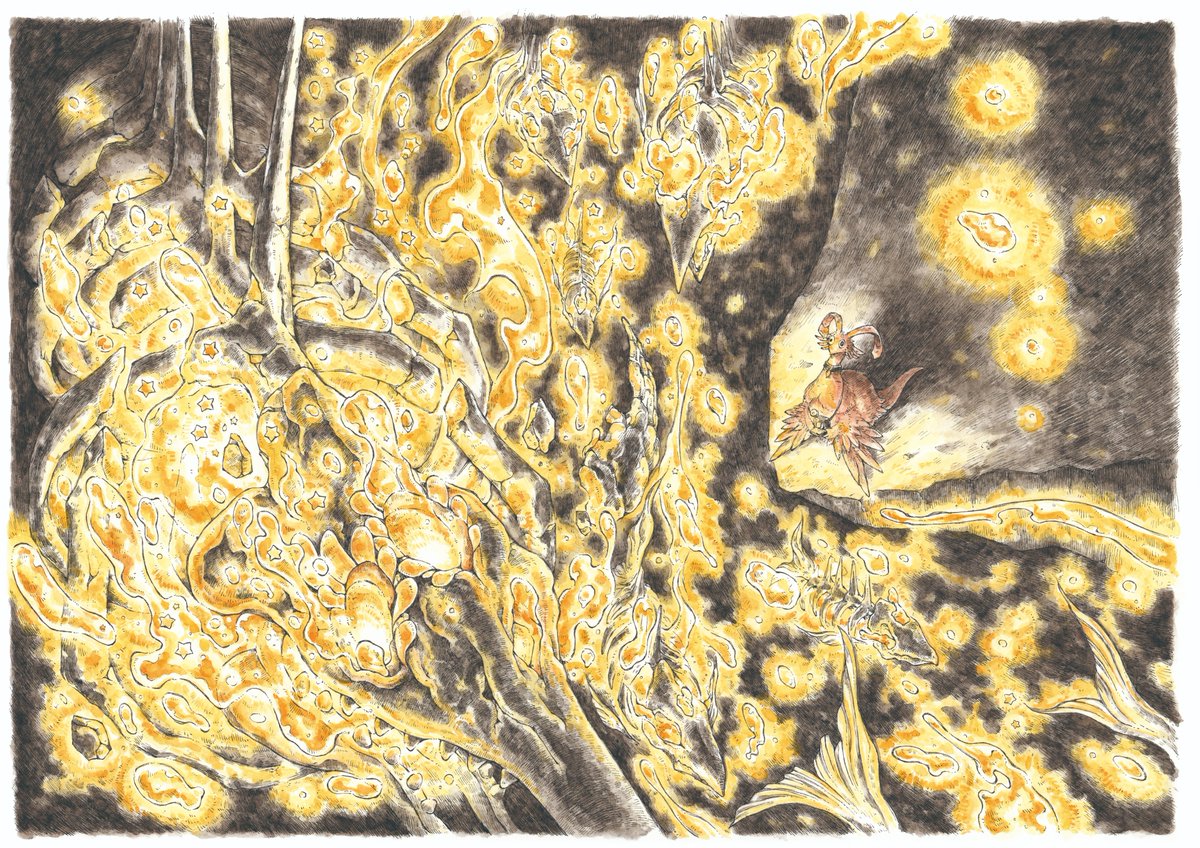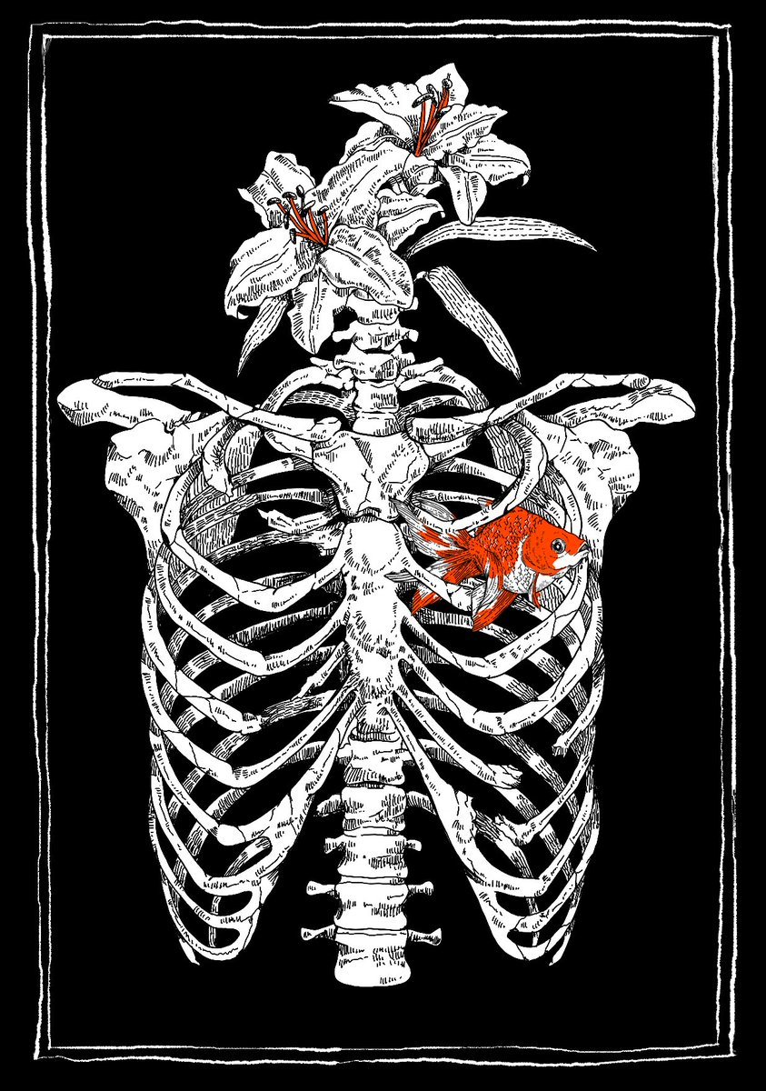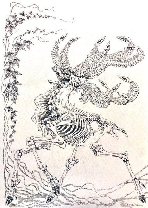 以前アナログ絵を見せると約束していたので😊ただここ数年ちゃんと描いたカラーイラストは年賀状ばっかりなんだな(;^ω^) そして毎回干支を骨にするというめでたくない絵☠️🦴 #イラスト #骨の展覧会 #過去絵を投げて絵を描いた気になろうキャンペーン
