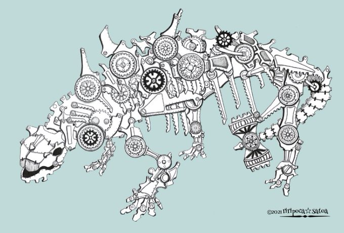 おはようございます(*´∀`*) 今日もよろしくお願いします✨ ⚙アンキロサウルス⚙ #歯車イラスト #スチームパンクイラスト #アンキロサウルス #骨格 #ペン画 #絵師さんと繋がりたい #誰かの性癖に刺され