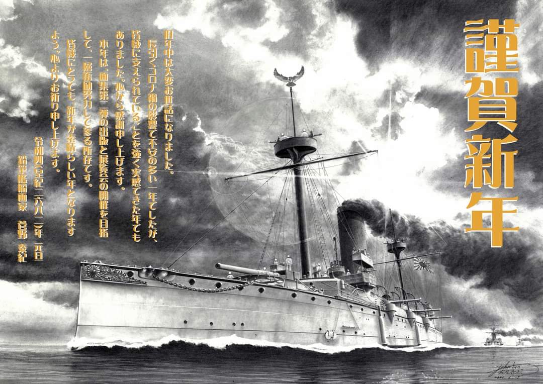 【謹賀新年】明けましておめでとうございます。今般私たちを取り巻く様々な不安が解消され、令和4年が皆様にとって良い年になりますように。 #あけましておめでとう #謹賀新年 #鉛筆艦船画 #菅野泰紀 #防護巡洋艦高千穂 #高千穂 #HappyNewYear #pencildrawing #pencil #ProtecteddCruiserTakachiho