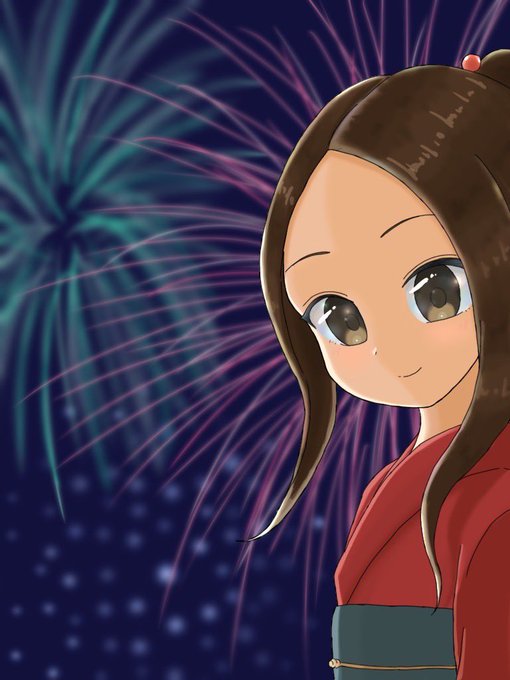 高木さん描きました! 今回はなかなか上手く描けた気がする! #からかい上手の高木さん #高木さん #高木さんめ #からかい上手の高木さん映画 #takagisan #夏祭り #花火 #イラスト #デジタルいらすと