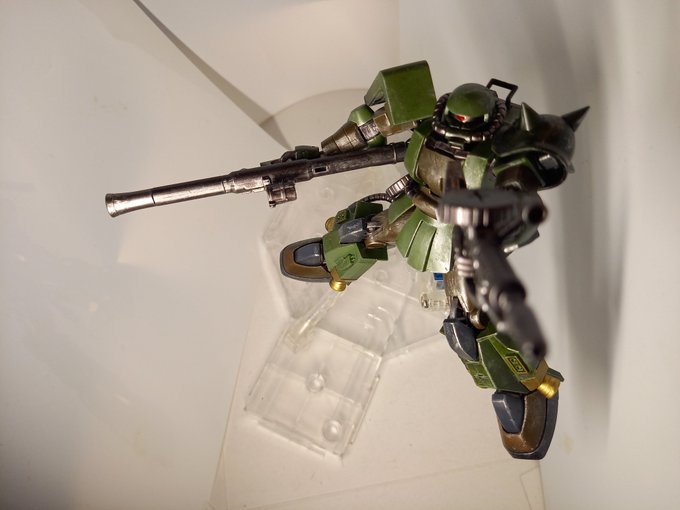 #白背景でも撮ってみた カラーレシピは引用元に😭 真紅の稲妻 ザクの皮を被ったゲルググとも云われる06R-2😭 (F2、HGMSV、オリジン系ザクのミキシング) ジャイアントバズ、ザクマシンガン×2、大きなランドセル/バーニア激燃え😏 #ガンプラ #GUNPLA #HGUC #ザク #高機動型ザク #ジョニー・ライデン twitter.com/gajumaru_museu…