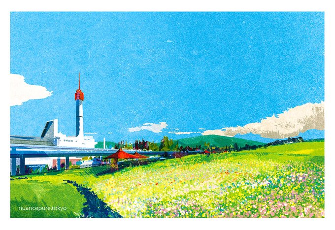 今日のスケッチ。 「ハイウェイ。」No.A_16996 夏の青い空は結構好き。 #高速道路 #風景画 #イラストレーション #winter #painting #drawing #Croquis #Art #illustration #procreate