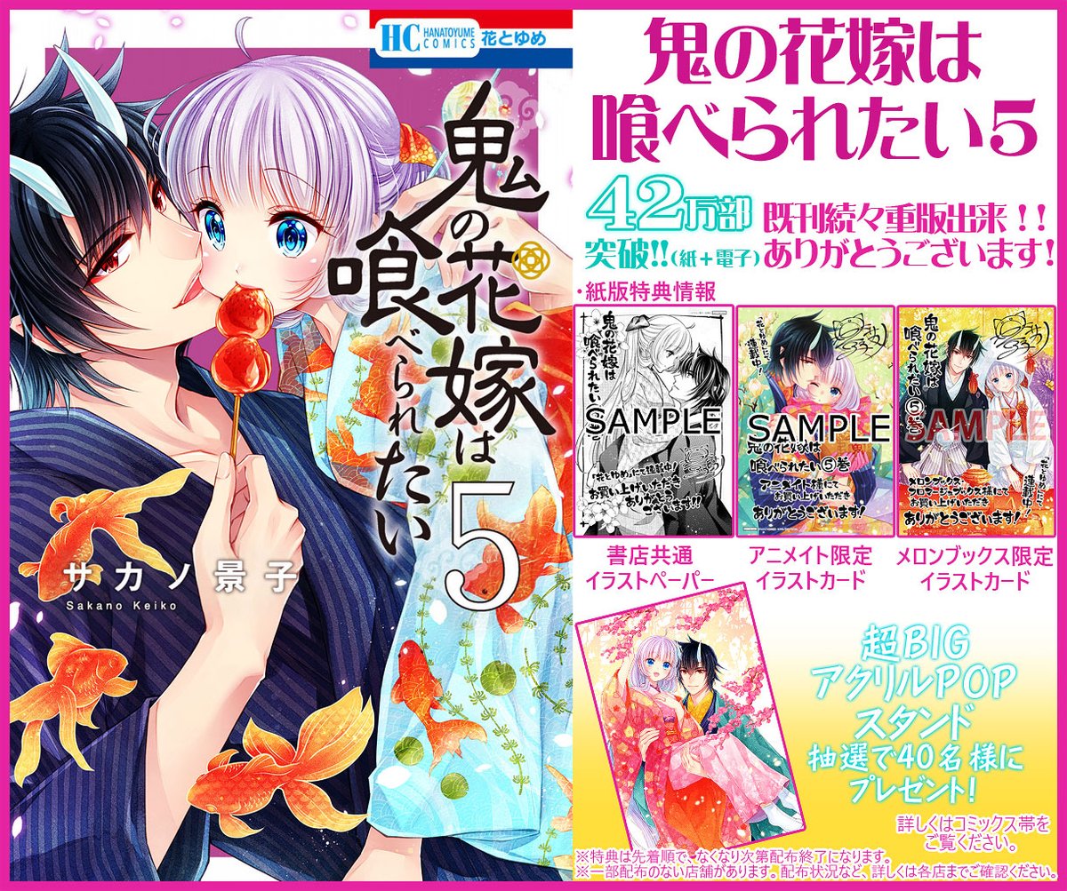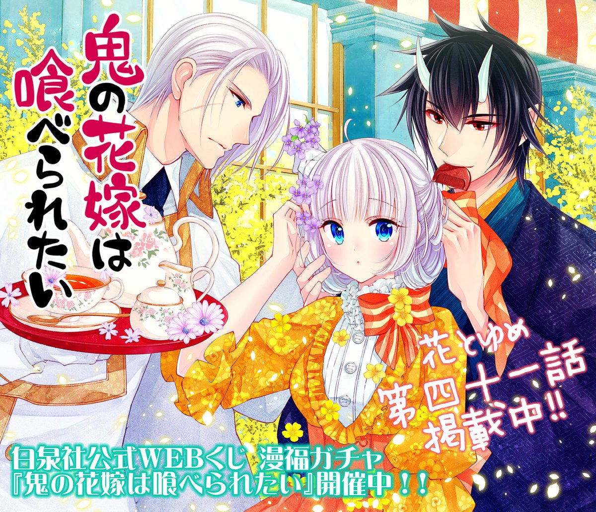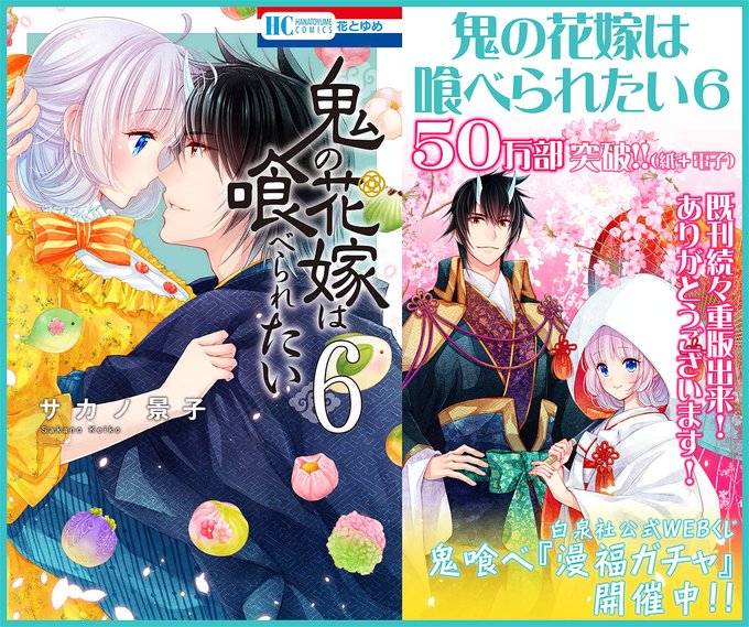 🌸花とゆめ🌸 【#鬼の花嫁は喰べられたい】第6巻本日発売! おかげ様で㊗50万部突破!!ありがとうございます❣️ 同時発売 花とゆめ巻頭カラーにて登場✨ \開催中🎉/ 🌟鬼喰べ漫福ガチャ🌟 hakusensha.gachatoku.me/products/onita… 是非ガチャお楽しみ頂けましたら幸いです🎁 どうぞよろしくお願いいたします!