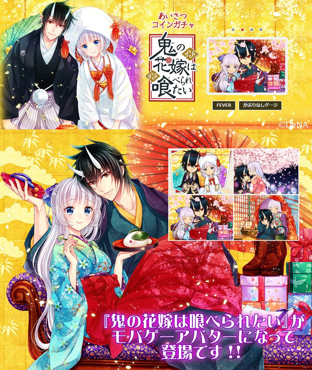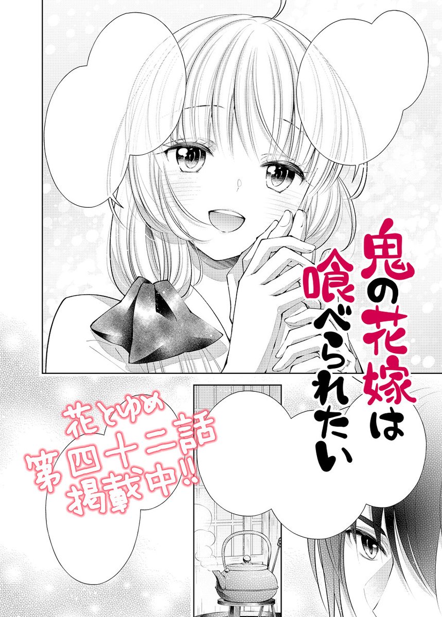 🌸花とゆめ🌸 #鬼の花嫁は喰べられたい 第42話掲載中! 少し疲れが溜まってしまった方にお届け出来たら嬉しいです。 そしてなんと『鬼喰べ』が モバゲーのあいさつアバターになって登場🎉✨ yahoo-mbga.jp/avatar/gachax/… カラーイラストの再現度がめちゃめちゃ凄いので是非お楽しみ頂けましたら幸いです❣️