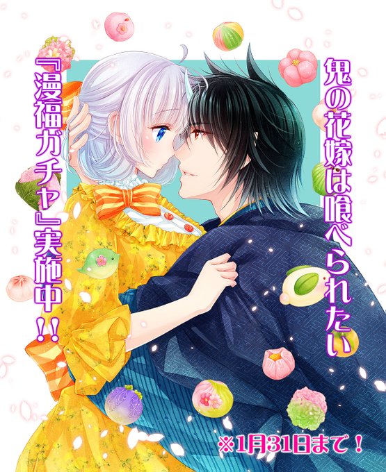 \開催中🎉/ 🌸鬼喰べ漫福ガチャ🌸 hakusensha.gachatoku.me/products/onita… 【※1/31 12:00まで】 終了間近です! ぜひぜひ回してみてください🎁 #鬼の花嫁は喰べられたい