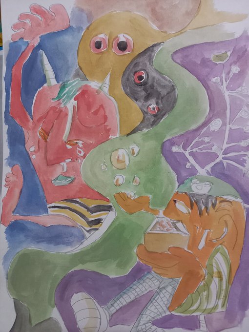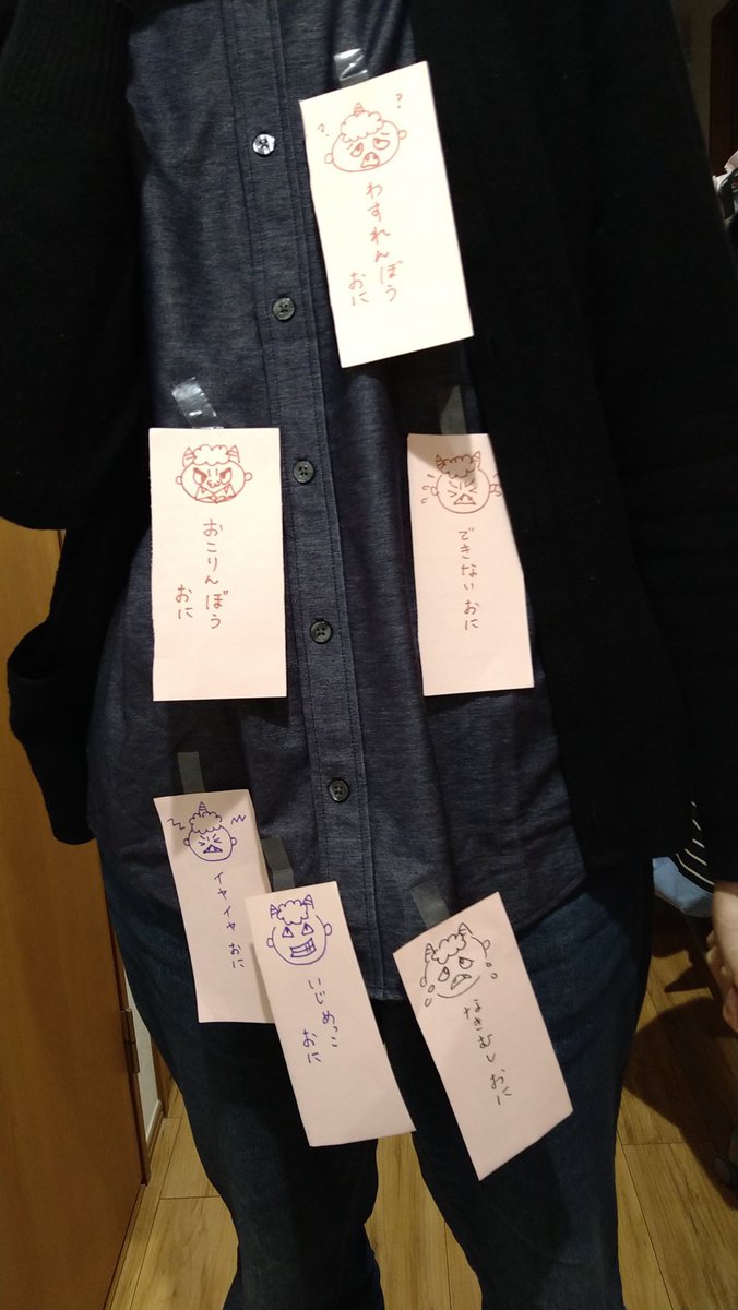 先程この寅鬼を退治しました! すごーく真剣な顔で豆を投げつけるアオがたまらなく可愛かったです😂 幼稚園方式「自分の中の鬼をやっつけましょう」ココの中の鬼、アオの中の鬼3つずつ描きました。 #お絵かき好きさんと繋がりたい #イラスト好きさんと繋がりたい #鬼は外 #豆まき #節分