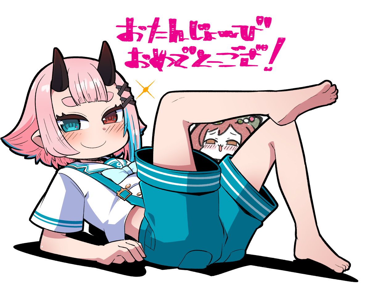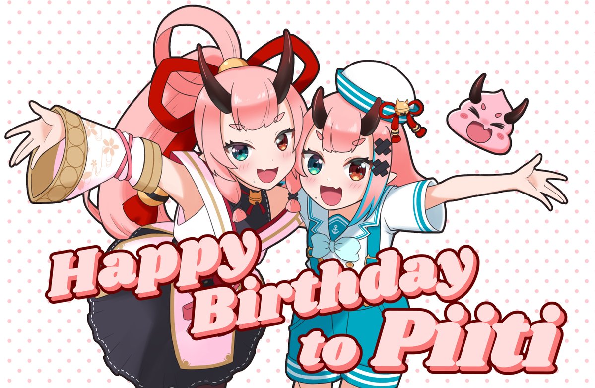 昨日誕生日だったぴぃちちゃんと今日復帰したももちゃんのつままれ風イラストです2人ともおめでとう!! リプに透過版もおいときます(ˇωˇ) #鬼ヶ島ぴぃち爆誕2022 #ぴぃちの宝物 #水蜜もも復活祭2022 #水蜜画 #ぴんきぃず