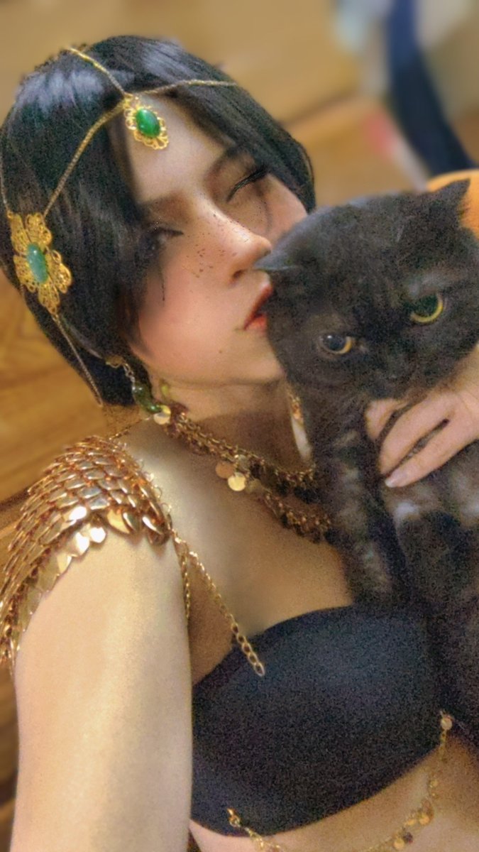 Happy Tiger's Lunar year🐯🐾 Although I don't have a big tiger, I also have a little black panther . 🖤💚 #鬼刀 #鬼刀cos #ghostblade #ghostbladecosplay #風玲 #風玲cos #aeolian #aeoliancosplay #wlop #cosplay #コスプレ #momijiihuang