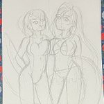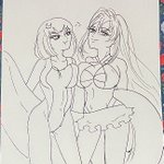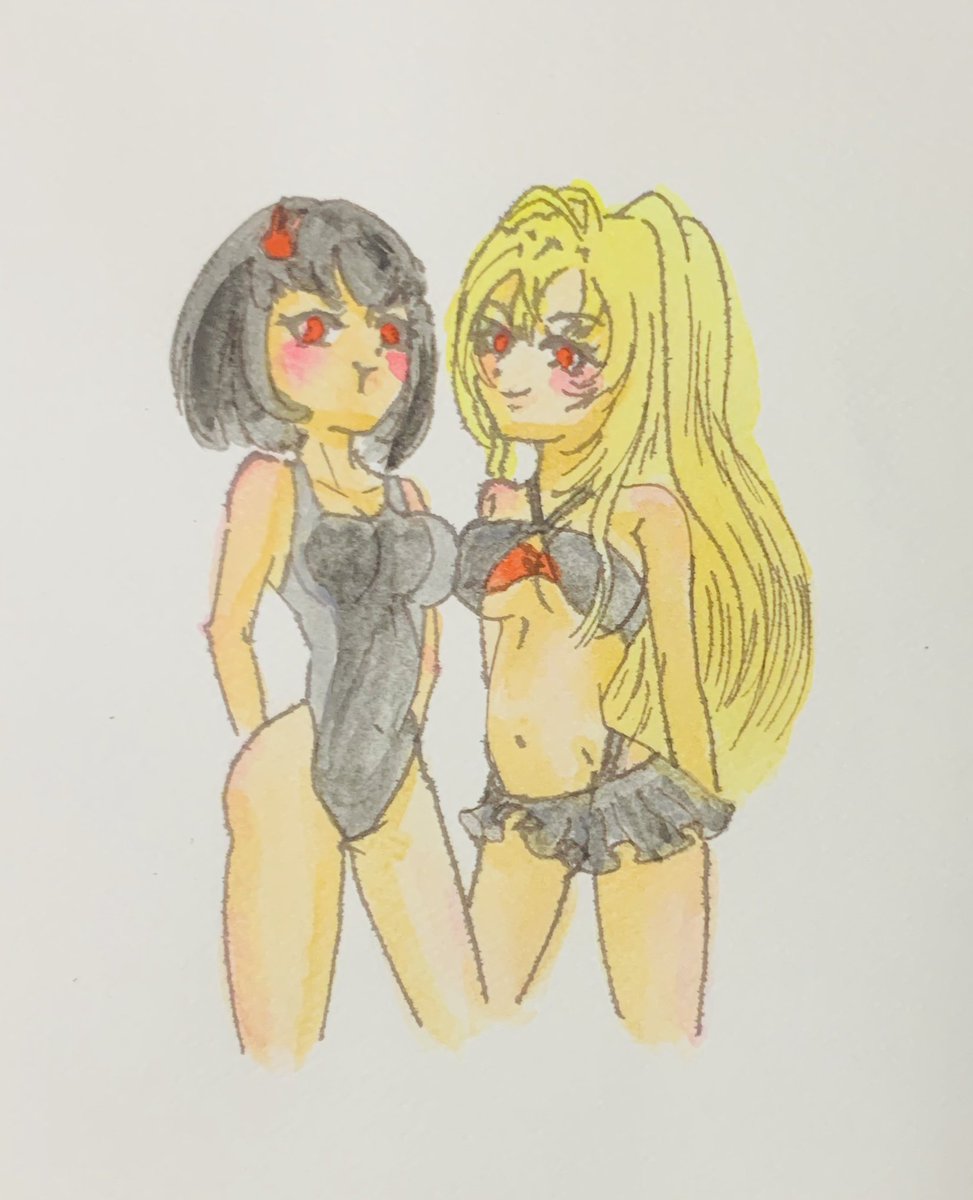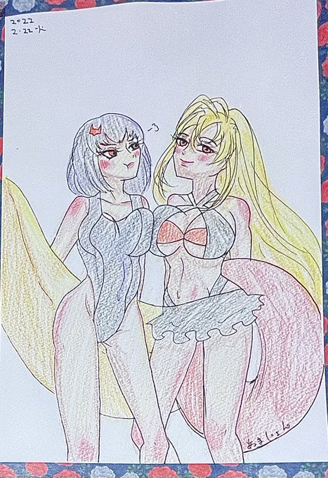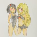 #童子切安綱 #鬼切安綱 #天華百剣 #天華百剣お絵かき部 #天華百剣ありがとう ※右リメイク 「どうした童子切?」 安「ウチがその水着いつもの格好とさして変わんないじゃんって言ったの」 童「鬼切ひどい!」 「どうどう」