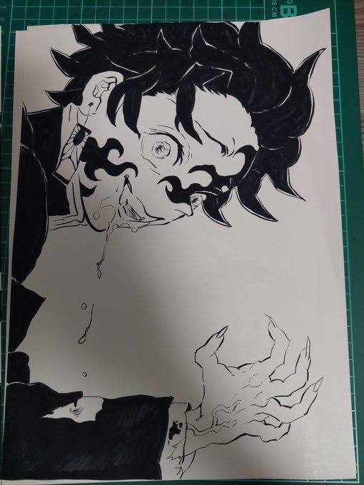 みなさん、こんにちは☺️ 鬼滅の刃、鬼化した炭次郎をぺんてる筆ペン中字のみで一発描きしてみました🎵良かったら見てください✨ #鬼滅の刃 #イラスト #竈門炭治郎 #鬼化 #ぺんてる筆ペン中字 #一発描き #絵描きさんと繋がりたい #鬼滅の刃イラスト