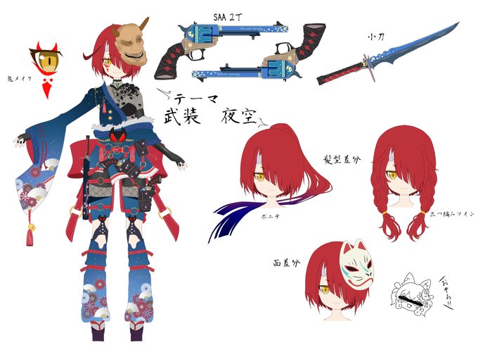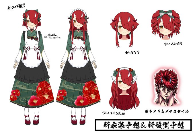 シルエットと初期新衣装サムネでちらっと見えてた所から和メイド服衣装かなぁと予想!髪型予想の右下はTHE ALFEEカバーの愛をとりもどせ聴きながら描いてたらいつの間にか描いてました🤔 #ばあちゃんこれ見て #鬼灯わらべ新衣装