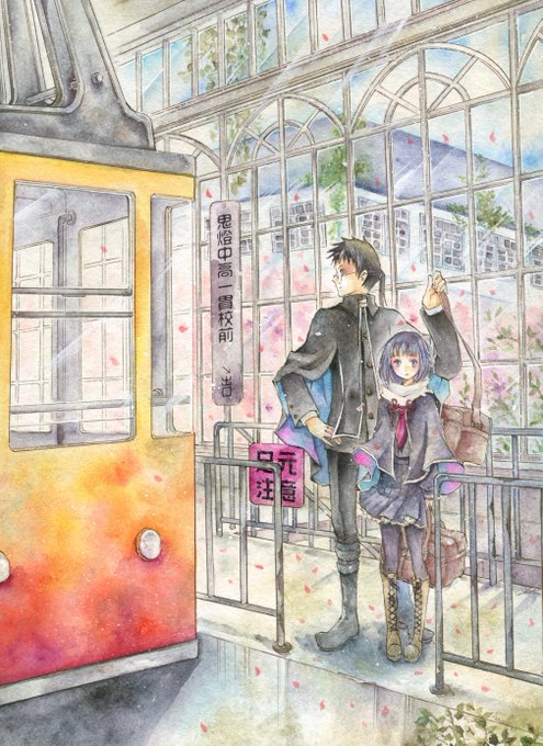【ロープウェイ乗り場にて/鬼燈街】 透明水彩 / ストラスモア水彩紙 -そこにあるいつもの日常…- #鬼燈街事件帖 #イラスト #illustration #夏休みはフォロワーさんが増えるらしい