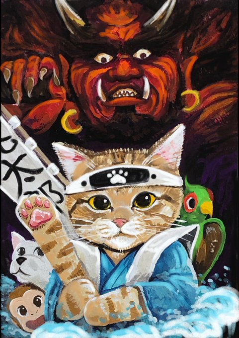 今回のケモミミちゃんは? 鬼退治するクマミミちゃん ちょっとお目々が行ってそうだけど満月だからかも、 くまさん系だけあって力はこの腕だけどあるようです (‘◉⌓◉’) #花maruの絵 #オリジナルキャラクター #ケモミミ #アナログ絵 #日本刀 #鬼退治 #絵柄好みって人いたらいいなぁ