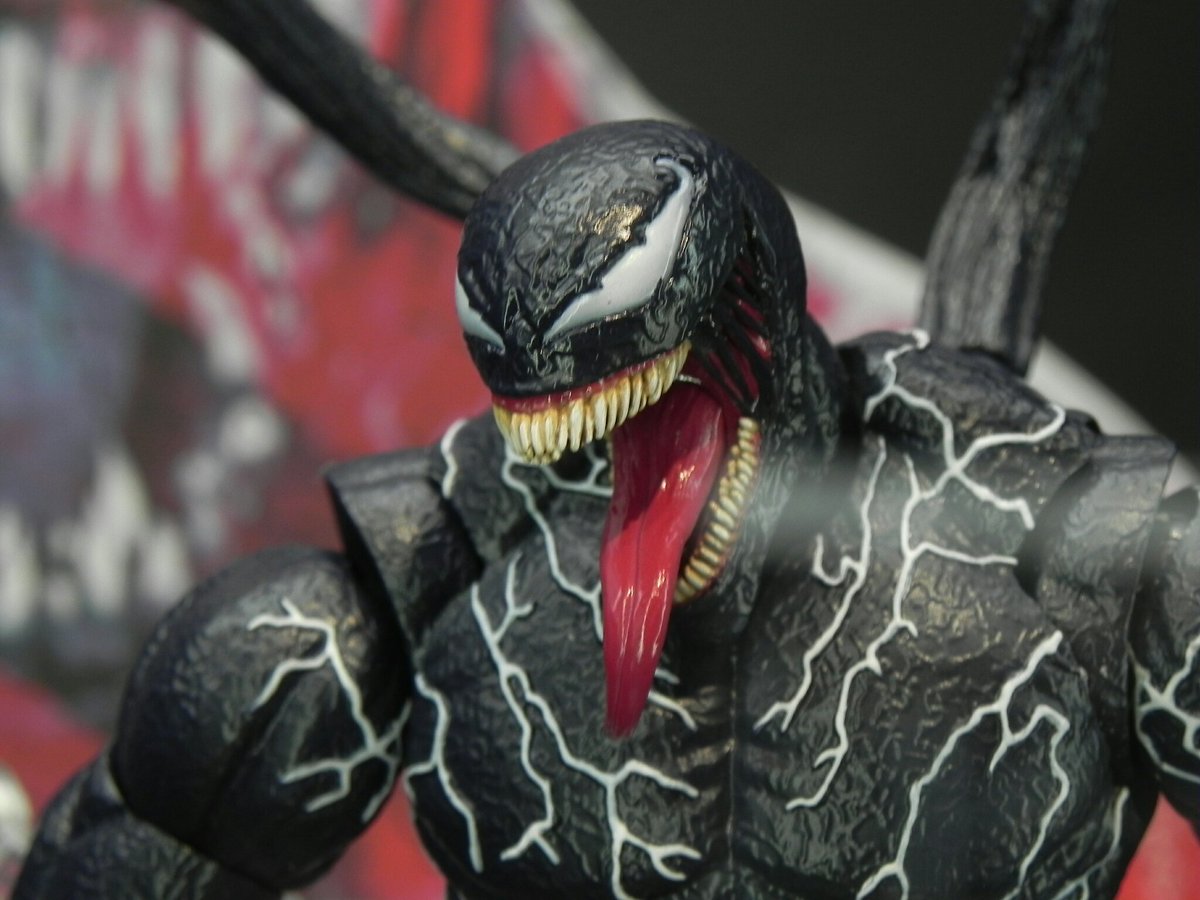 展示サンプルのヴェノムです、質感、サイズどちらも圧巻でしたね。 これ発売されたらおいくらになるんだろう? ヴェノムってサイズ的にも大型だし、触手やエフェクトも多いとそこそこのお値段になりそう。 #フィギュアーツ写真部 #魂ストア