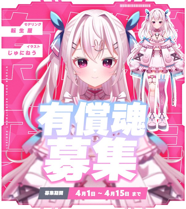 【Vtuber魂募集】 制作したLive2Dモデルの魂募集をします! リプにデザイン、動画を配置いたしますので是非ご覧ください! 是非ご応募お待ちしております! 【期限】3/7まで 応募フォーム➠(forms.gle/Ve6fJVDjTDgJ2t…) #Vtuber魂募集 #魂募集 #Vtuberオーディション