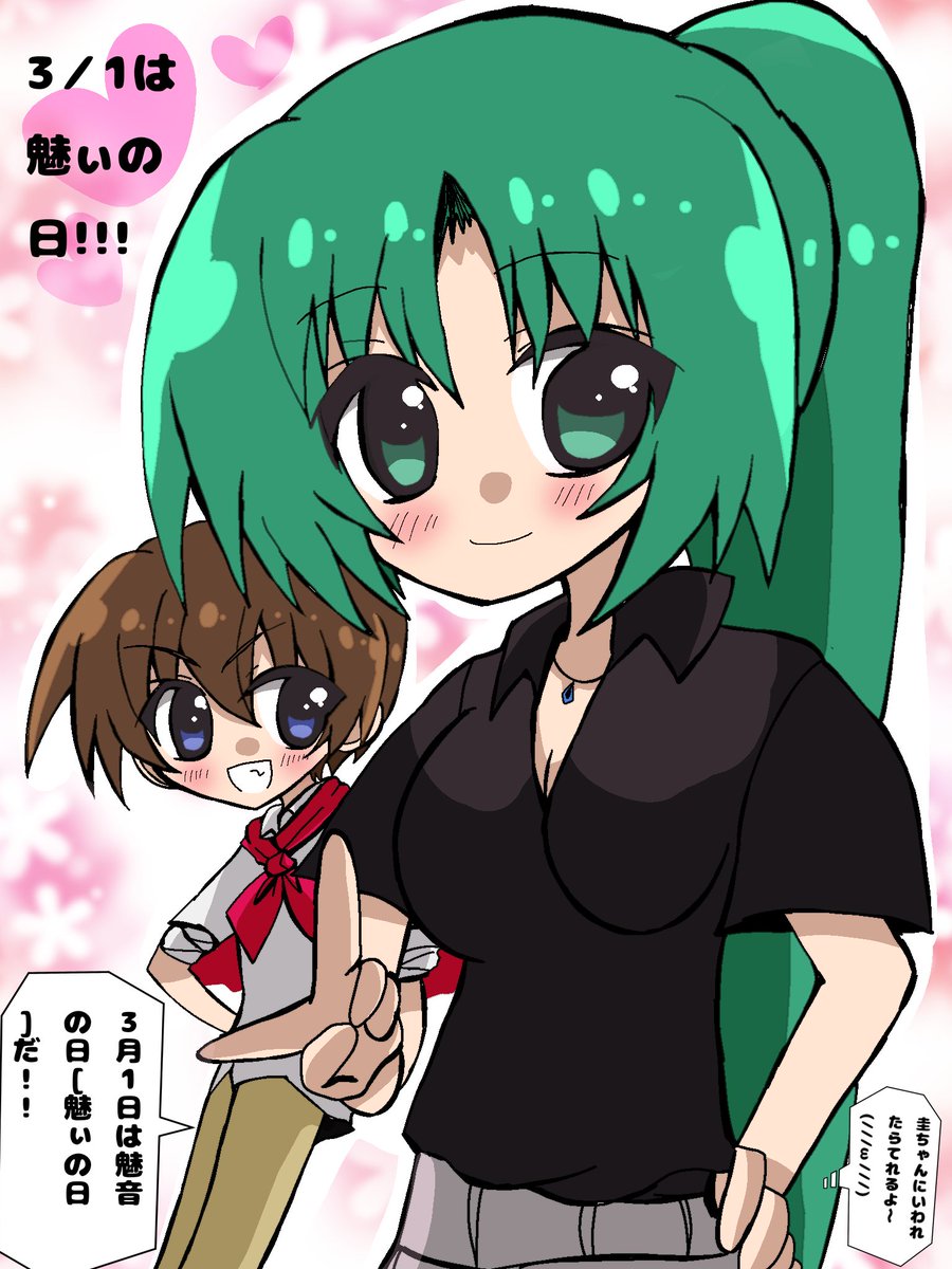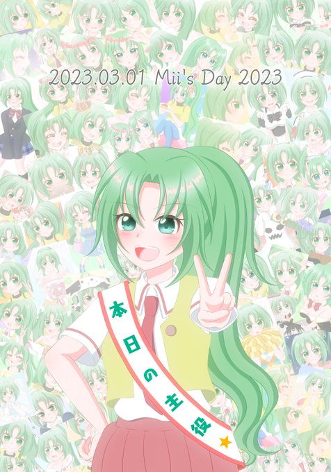 魅音~!! 今年も魅ぃの日おめでとう!!🎉 約2年分の魅音のイラストを背景に詰め込みました💚 可愛い魅音を描けるように、これからも頑張るね! だいすきだよ!!😘 #ひぐらしFA #ひぐらしのなく頃に #魅ぃの日 #魅ぃの日お祝い会2023
