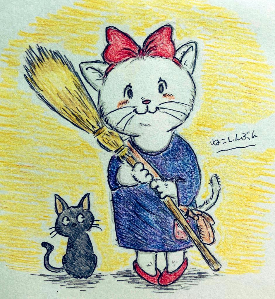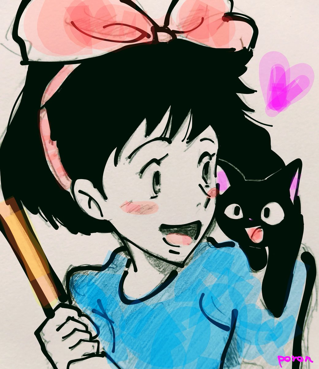 あ~落書きに時間のかかっていない No2(ひなプー調べ)のキキちゃんだなぁ~(=゚ω゚)ノウニャンコ♪ ダントツはナウシカちゃんだけど雑すぎて 再掲した事がないという…ヽ(`Д´#)ノ フニャー! #魔女の宅急便 #キキ #絵描きさんと繋がりたい