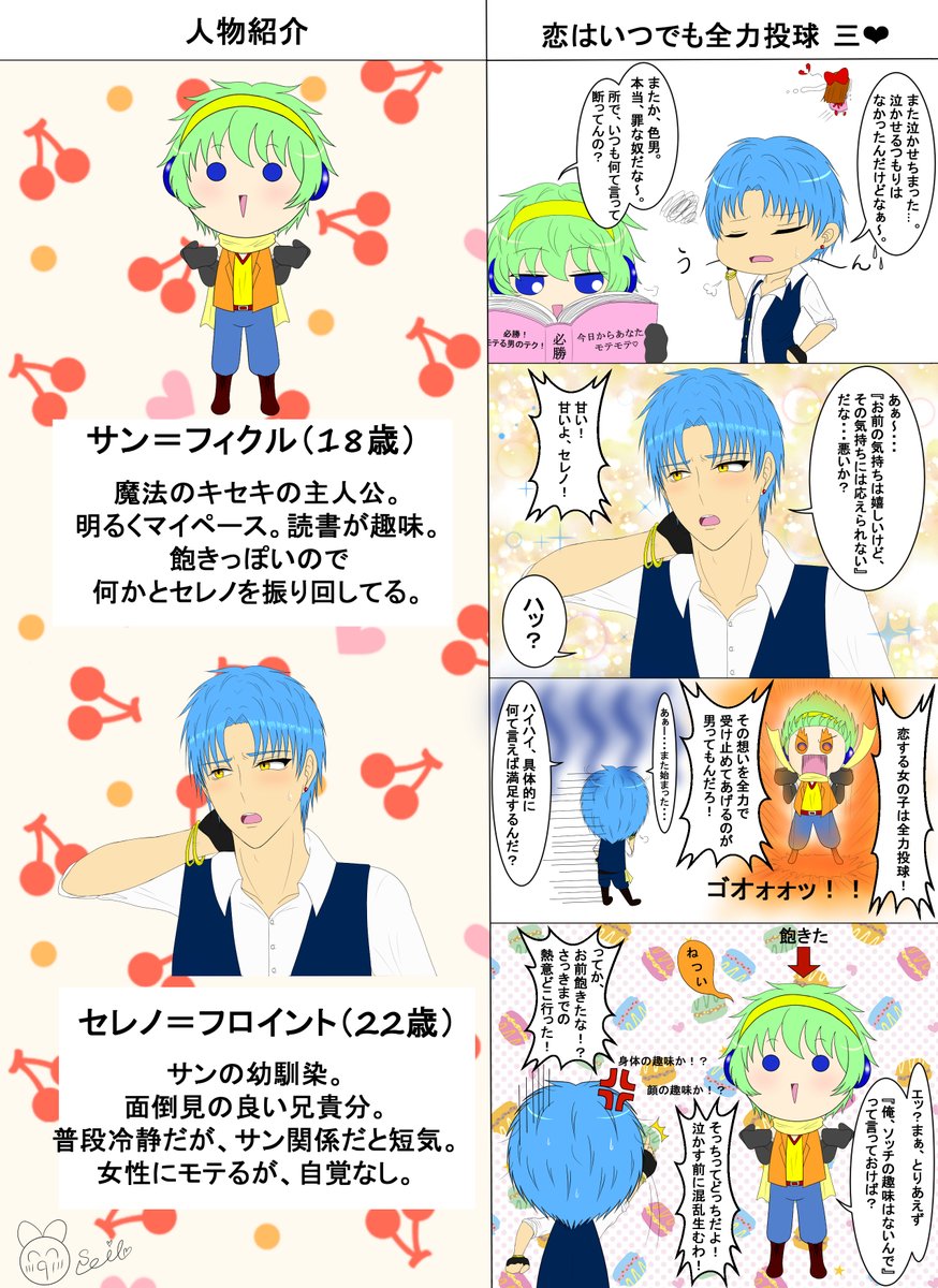 昔描いた4コマの清書できた~! 影は付けてないから簡単にだけど、カラーにした! 背景なんてないよ(笑) 今回からなるべくサインとタグ付けるように意識してみる(笑) #魔法のキセキ #漫画が読めるハッシュタグ