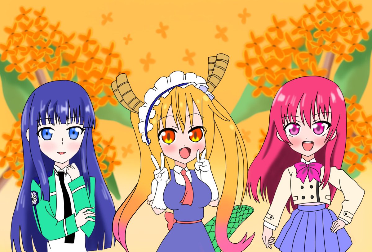 どうもKATOSANです。遅くなりましたけど、個人的に好きな可愛い2021年夏アニメランキングイラストです。優しい金木犀で甘い秋の香りと癒されますね。みなさんの好きな夏アニメは何ですか? #小林さんちのメイドラゴン #魔法科高校の優等生 #カノジョも彼女 #2021夏アニメ #絵描きさんと繋がりたい